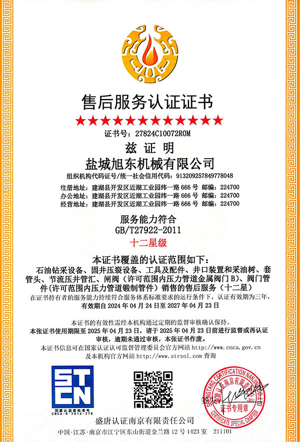 售后服務(wù)認(rèn)證證書
